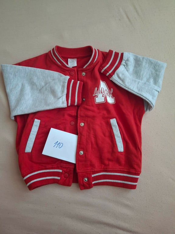 Predám štýlovú detskú baseballovú bundu vo veľkosti 110. Bunda je v červeno-sivej farbe s nášivkou "Lucky Girl". Je v dobrom stave, ideálna na prechodné obdobie. Zapínanie na patentky.